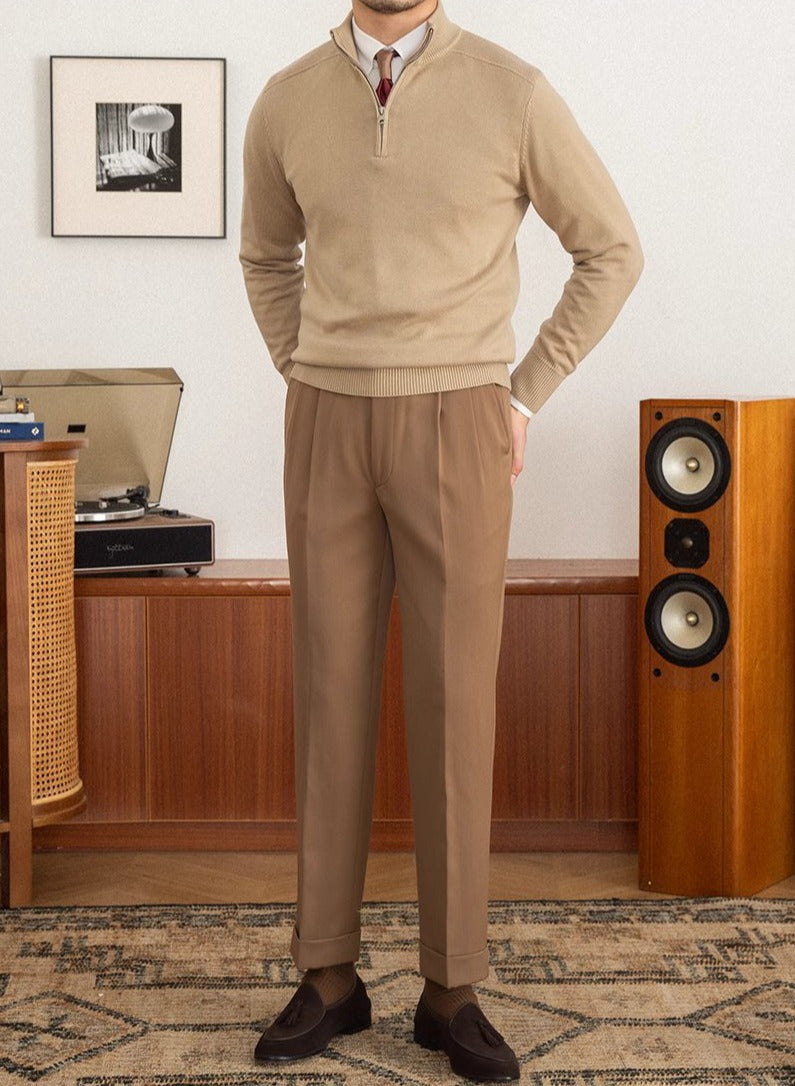 Our Claudio Half Zipper Jumper brings elevated comfort and classic style to your wardrobe. Crafted from a soft wool-blend with rich texture and a smart half-zip front.