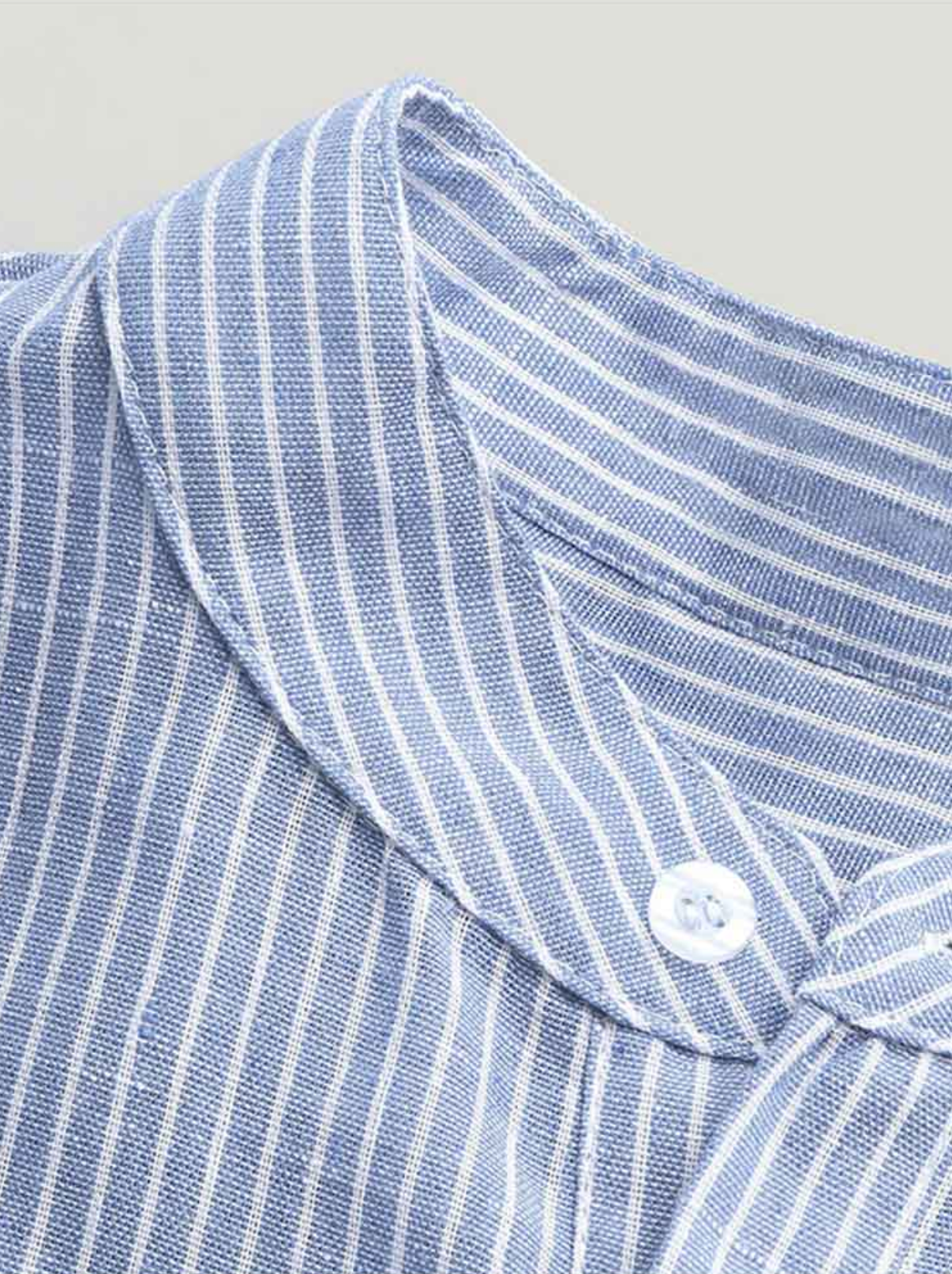 The Giovanni Shirt is a stripped-back essential made from lightweight linen with a dry, textured hand. Its muted stripe pattern and relaxed structure nod to Riviera elegance without ever chasing attention. Built for layered spring days and slow city evenings alike.