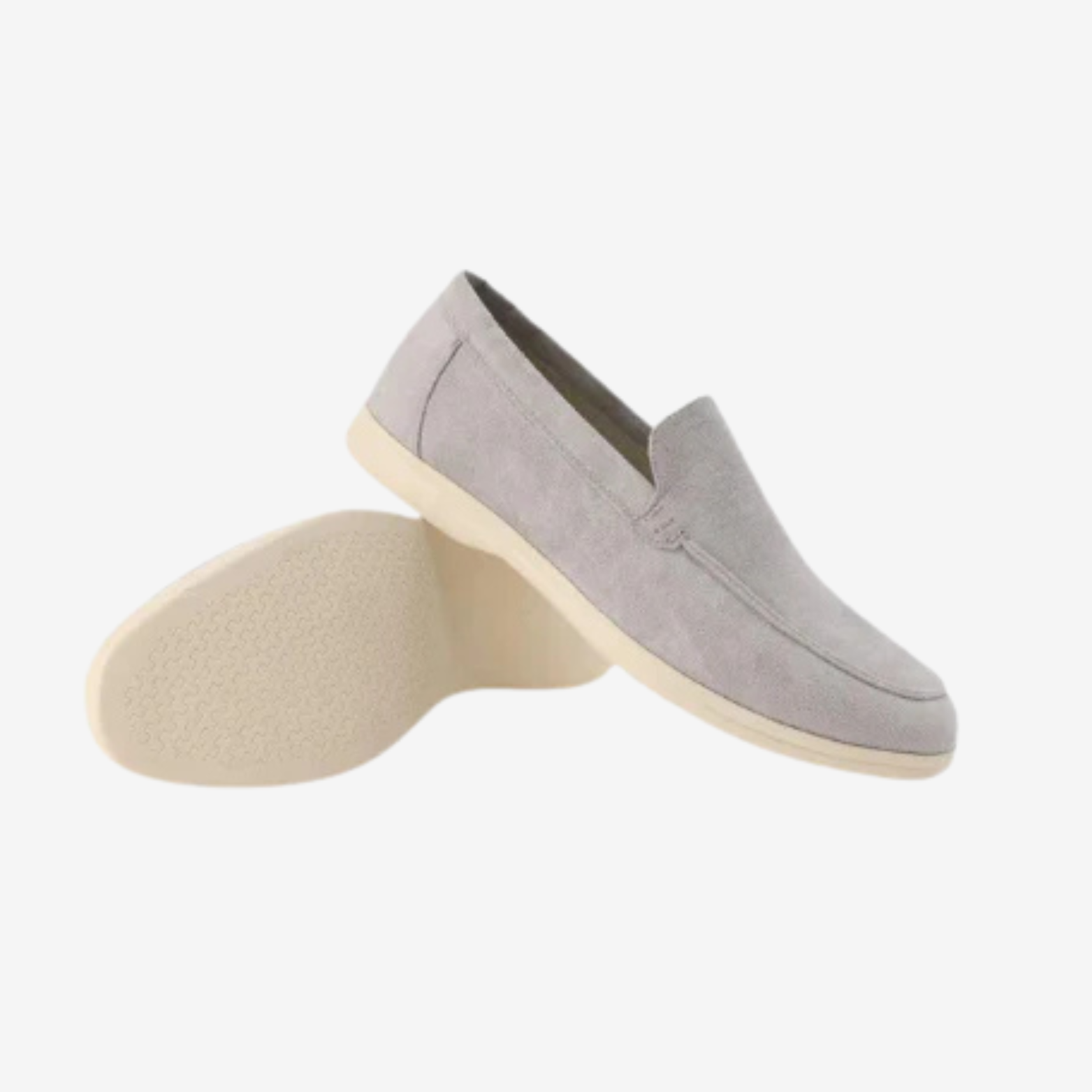 Antonio Suede Loafers – Gray: Handcrafted from supple suede, these gray-toned loafers epitomize quiet luxury. Their versatile design seamlessly transitions from daytime coastal outings to elegant evening gatherings, ensuring both comfort and enduring style.