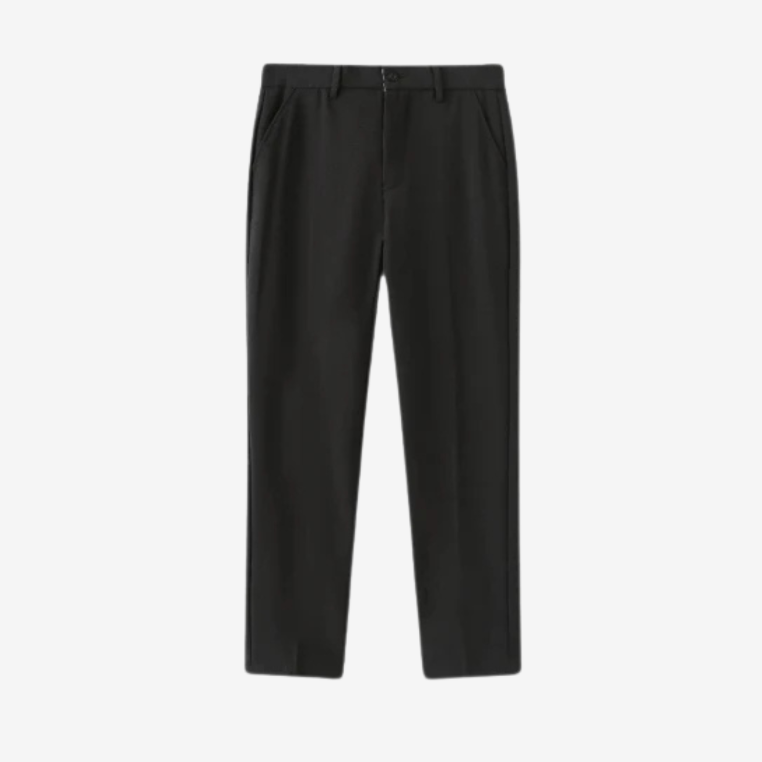 Nicolas Trousers – Black: Combining classic design with modern comfort, the Nicolas Trousers features a lightweight cotton-polyester blend. Its relaxed fit and timeless black shade make it ideal for leisurely seaside strolls or casual alfresco luncheons.