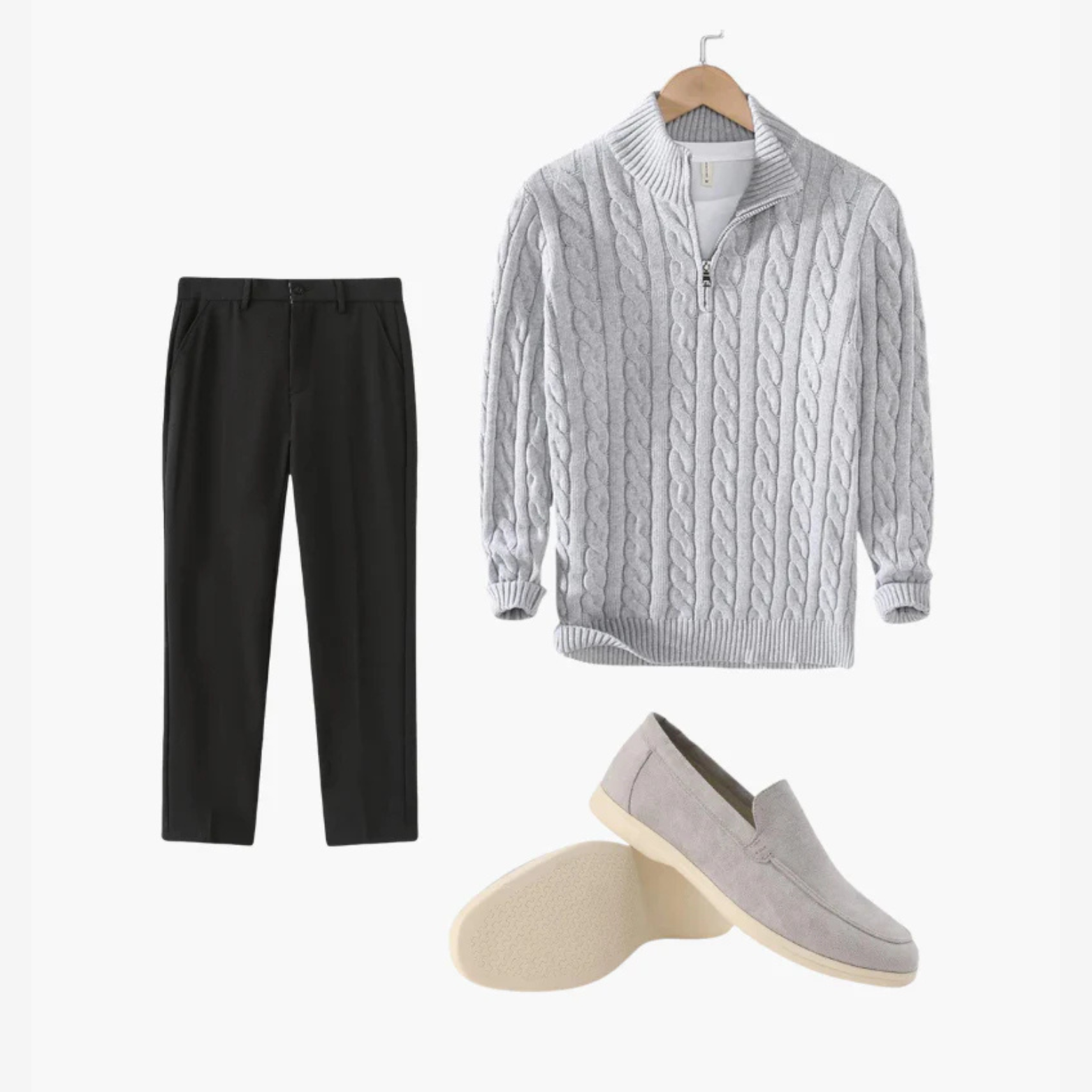 Claudio Quarter-Zip – Gray: Meticulously crafted from 100% premium cotton, this zip-up embodies understated elegance. Its refined gray hue and impeccable tailoring offer both comfort and sophistication, making it a versatile addition to any discerning wardrobe.