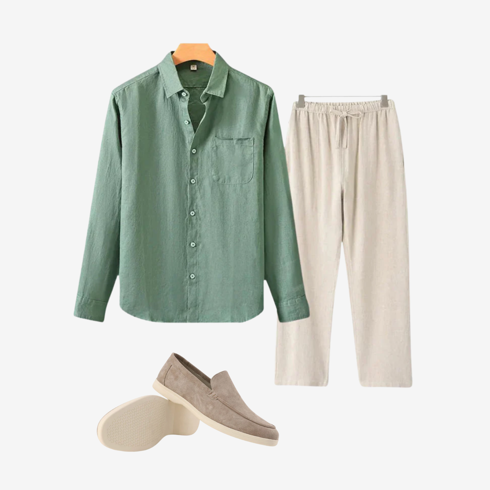 Aldo Linen Shirt: Experience unparalleled comfort and sophistication with our 100% high-quality linen shirt. Its breezy design makes it an ideal choice for warm, seaside days.