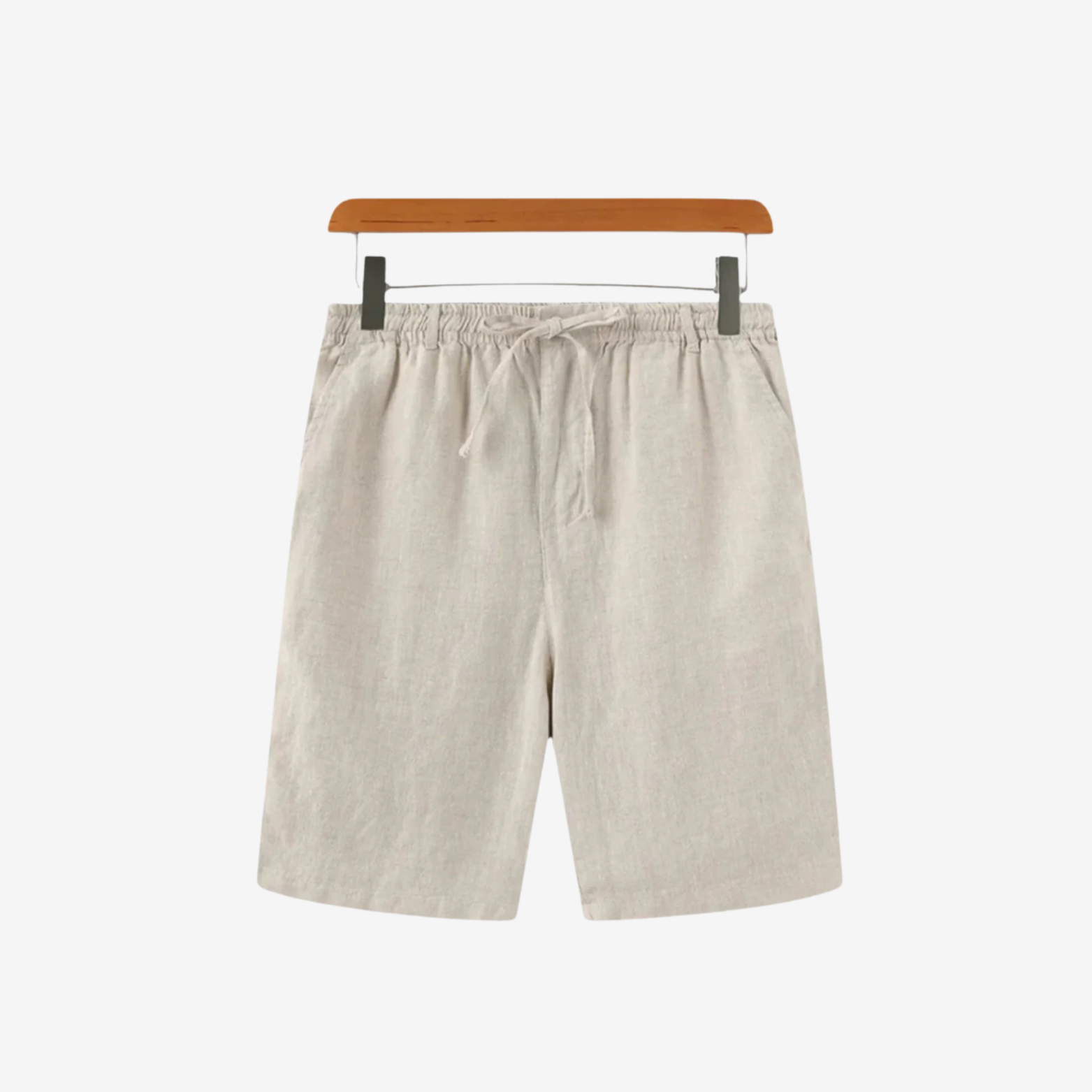 Guido Linen Shorts: Impeccably cut for comfort and poise, these linen shorts are ideal for sun-drenched days by the sea. Their neutral tone and relaxed silhouette evoke a sense of leisure rooted in tradition.