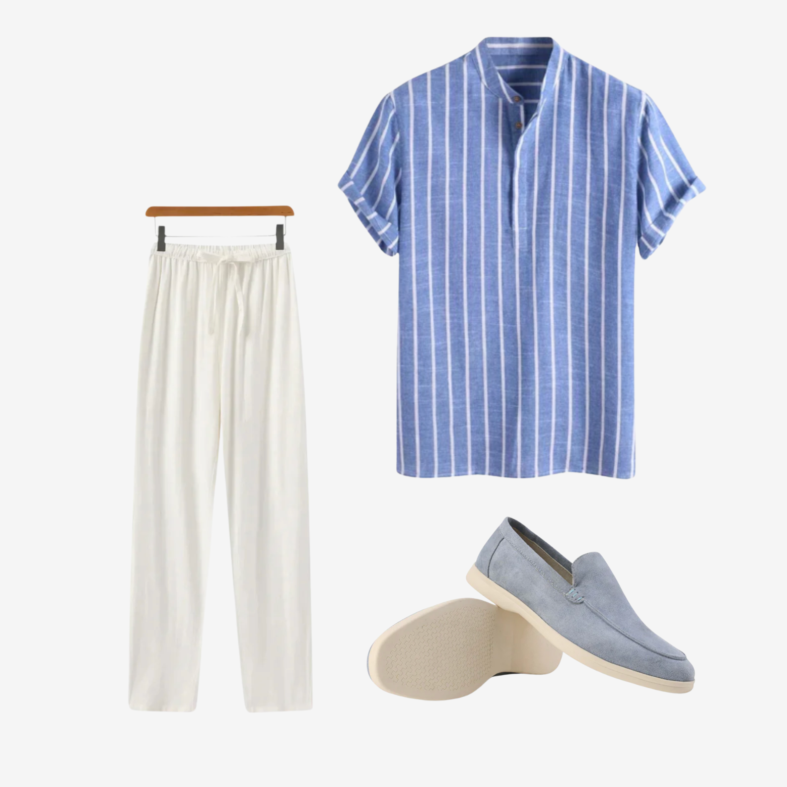 Antonio Suede Loafers: Handcrafted in Italy from supple calf suede, these marine-toned loafers epitomise quiet luxury. Their versatile design seamlessly transitions from daytime coastal outings to elegant evening gatherings, ensuring both comfort and enduring style.